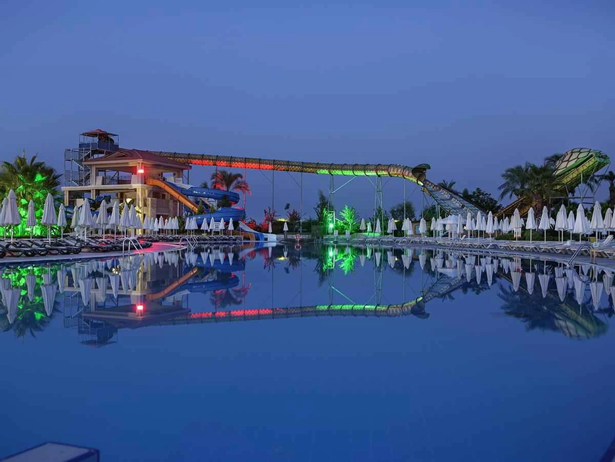 Antalya’da Belek-Boğazkent mevkiinde bulunan tesis ince çakıllı ve kumlu sahili, çeşitli büyüklükte havuzları ve Aquapark’ı ile özellikle çocuklu aileler için idealdir. Tesisin Kendisine Ait 500m Özel Plajı Bulunmaktadır.