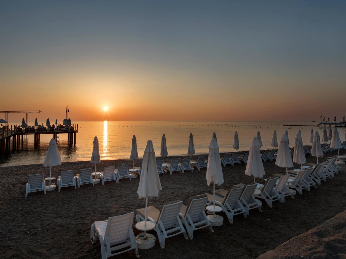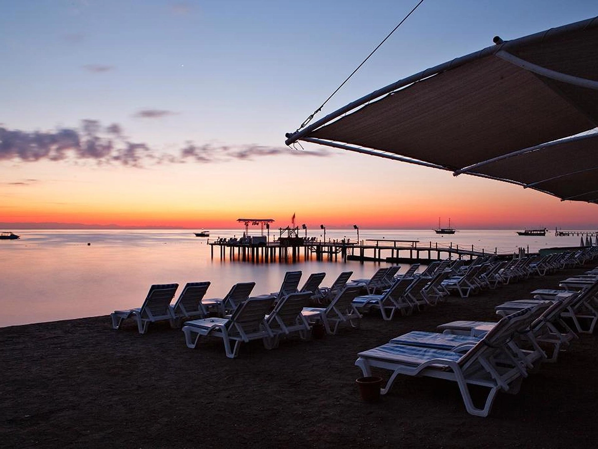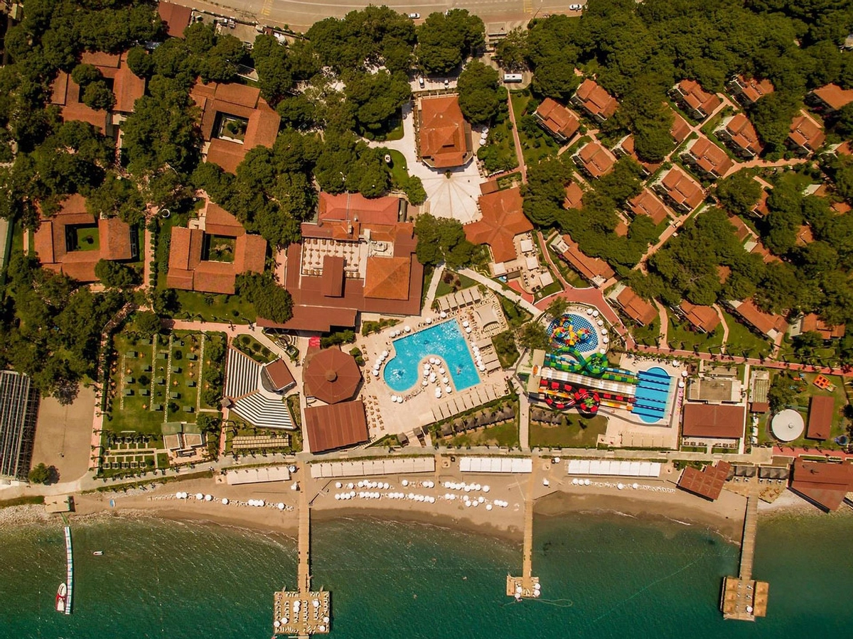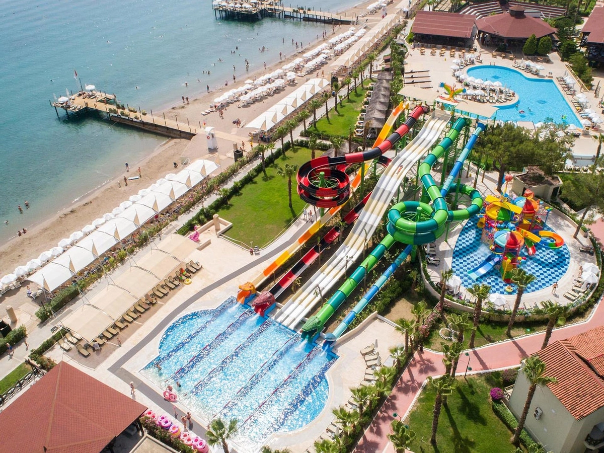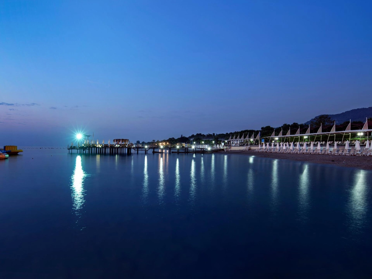 Denize sıfır olan tesis ince çakıl ve kum karışımı bir sahile, kendine ait üç ayrı iskeleye, çeşitli büyüklükte havuzlara ve bir aquaparka, mavi bayrağa sahiptir. Tesisin Kendisine ait 900 m özel plajı bulunmaktadır.� Havuzda ve plajda şezlong, minder, gölgelik, plaj havlusu ücretsizdir.