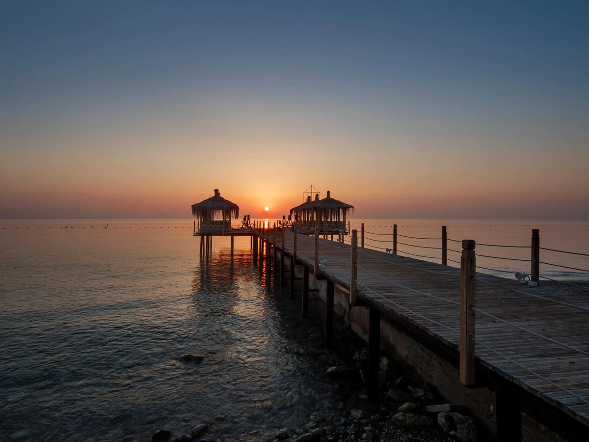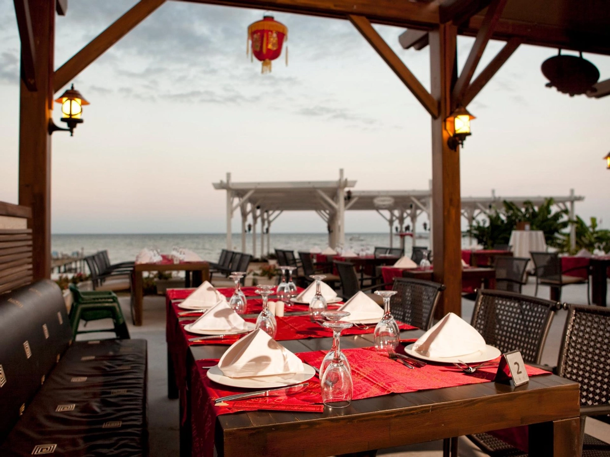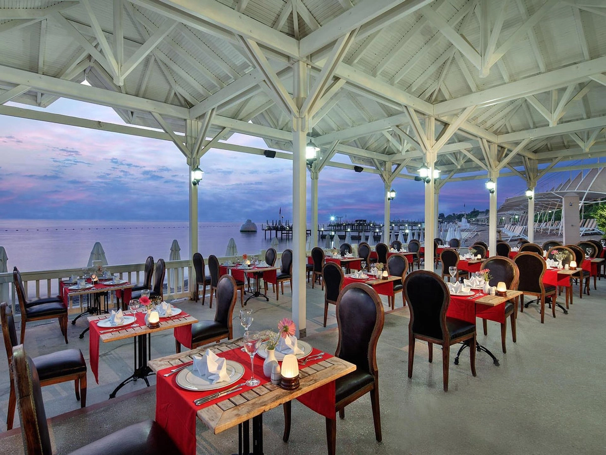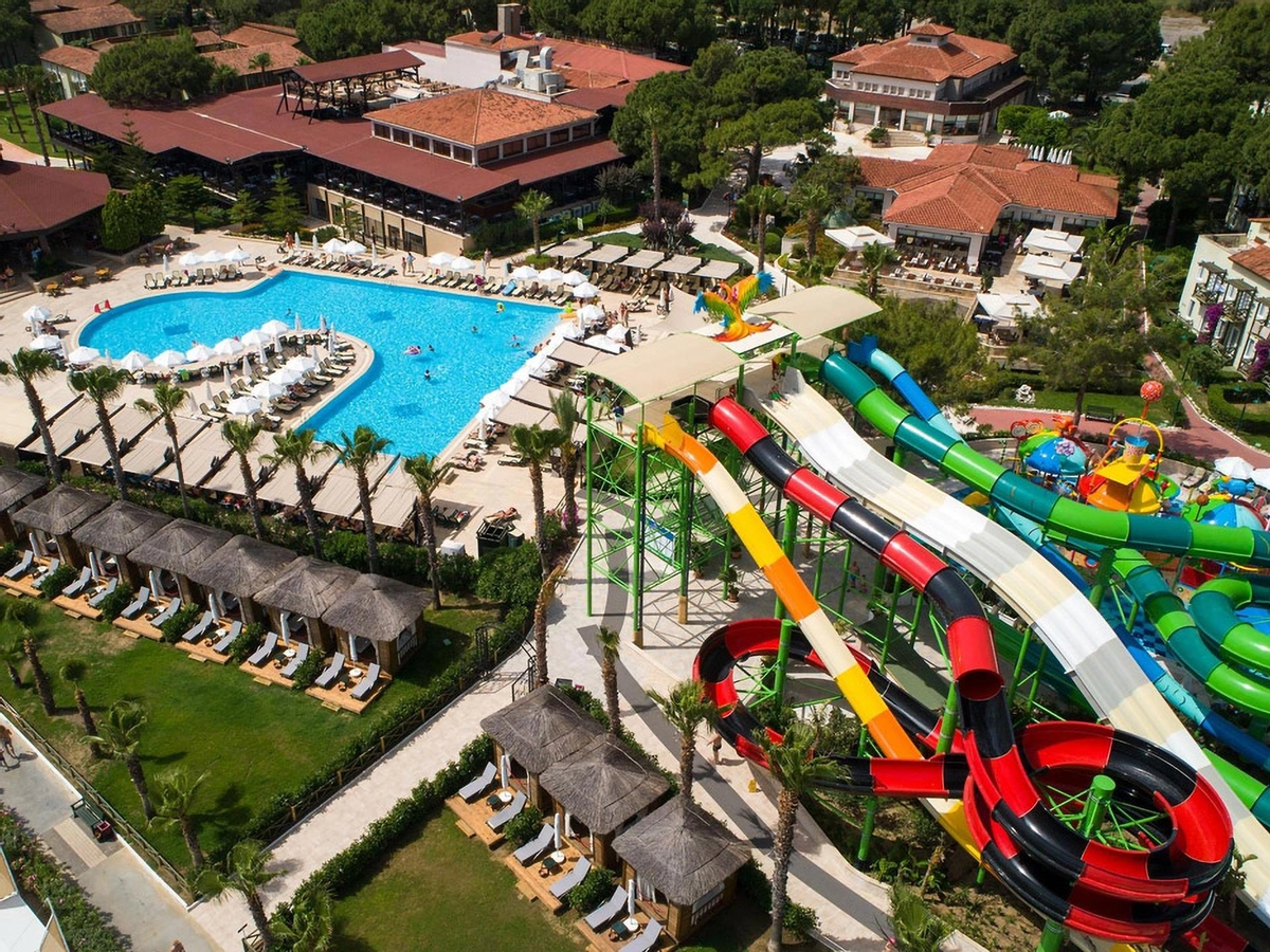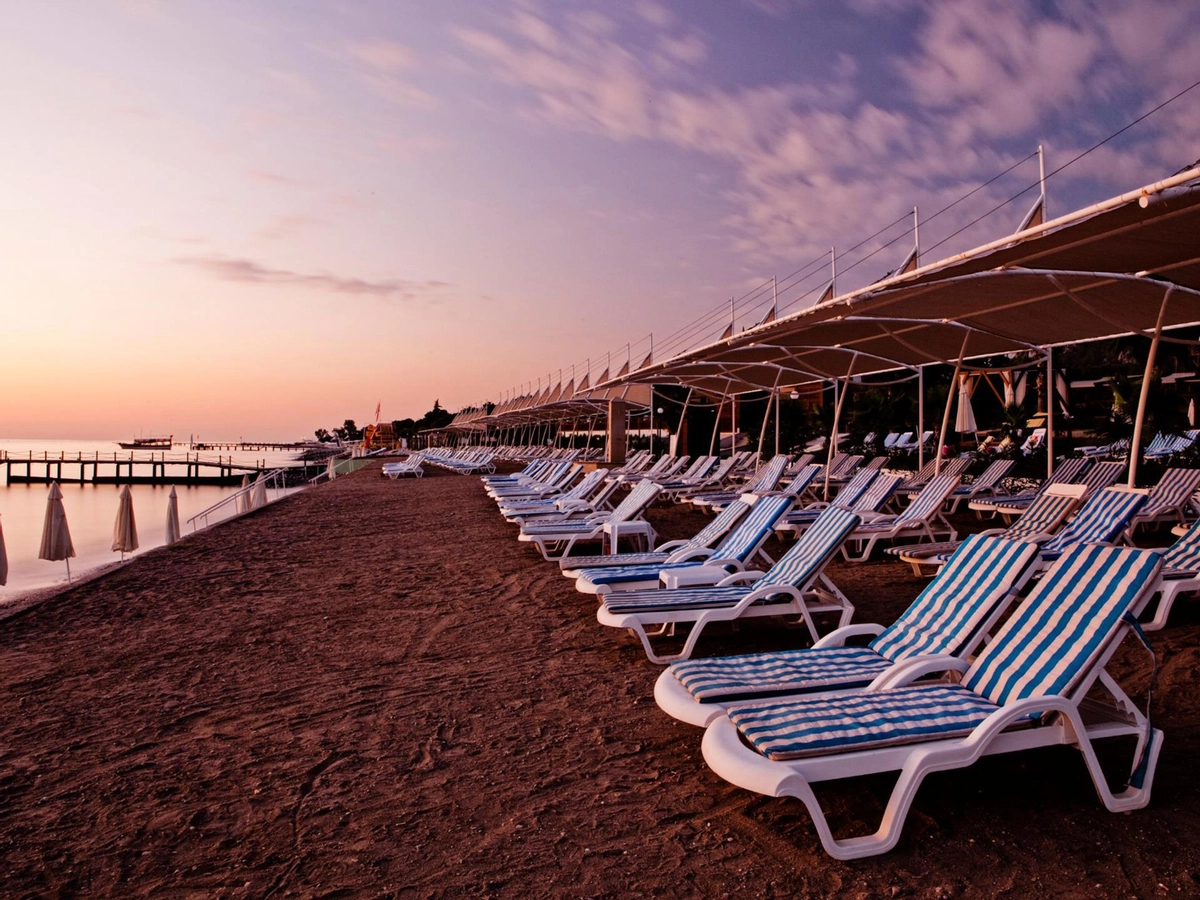 Denize sıfır olan tesis ince çakıl ve kum karışımı bir sahile, kendine ait üç ayrı iskeleye, çeşitli büyüklükte havuzlara ve bir aquaparka, mavi bayrağa sahiptir. Tesisin Kendisine ait 900 m özel plajı bulunmaktadır.� Havuzda ve plajda şezlong, minder, gölgelik, plaj havlusu ücretsizdir.