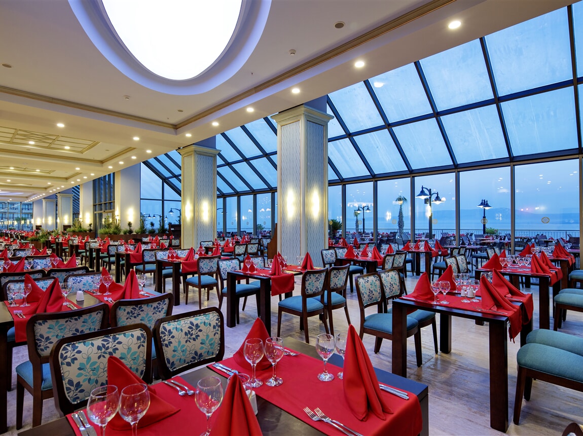 Royal Teos Thermal Resort Clinic Spa İzmir şehir merkezine 23 km, Seferihisar merkezine 6 km ve İzmir Adnan Menderes Havaalanı 60 km uzaklıktadır. Ege, Osmanlı yemekleri ve dünya mutfaklarından en güzel lezzetleri sunan 4 alakart restoran, 24 saat açık bir bar, fitness merkezi ile sizi konuk eder. Tatilin keyfini çıkarmak ve en güzel zamanları geçirmek için Royal Teos Thermal Resort Clinic Spa sizi bekliyor!